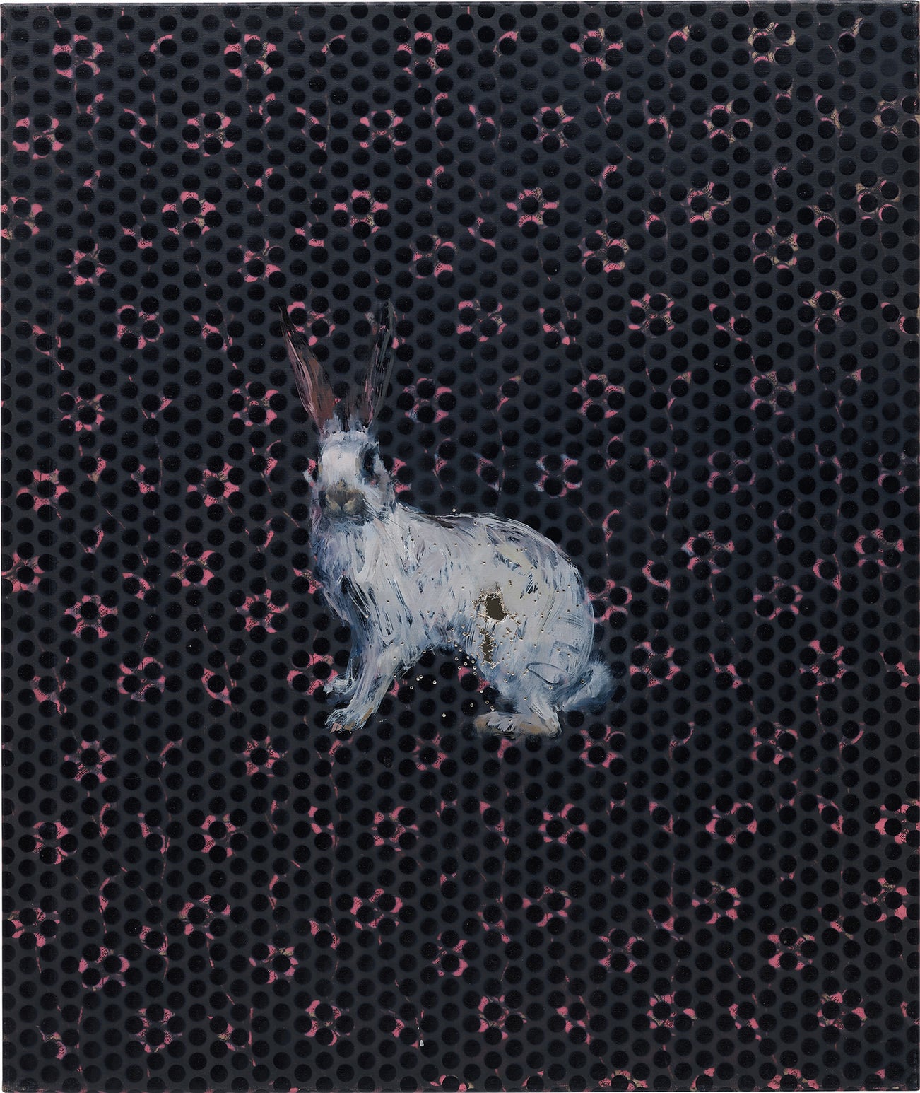 Although Baker has produced sculptural pieces in a wide and varied choice of materials as well as many large-scale and detailed drawings, he remains primarily a painter with an interest in narrative and an understanding of the tradition of painting. Known to purposefully damage his work by drilling, cutting and even shooting it, Baker intentionally puts in to question the preciousness of art and the definition of its beauty, adding to the emotive charge of the work he produces. Indeed Edward Lucie-Smith has described Baker’s paintings as having, “something more, a kind of romantic melancholy that is very British. And sometimes the melancholy turns out to have sharp claws. The pictures make you sit up and examine your conscience.”