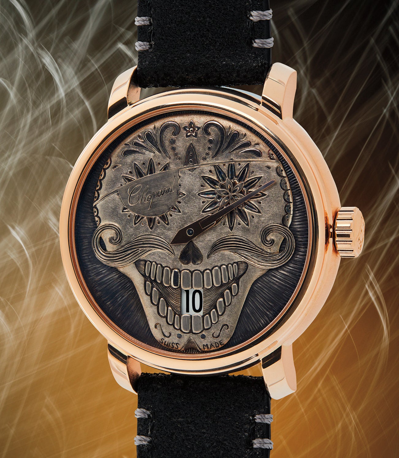 蕭邦,獨一無二,玫瑰金跳時腕錶,備八日動力儲存、手工浮雕錶盤—拍賣收益撥捐瑞士研究所