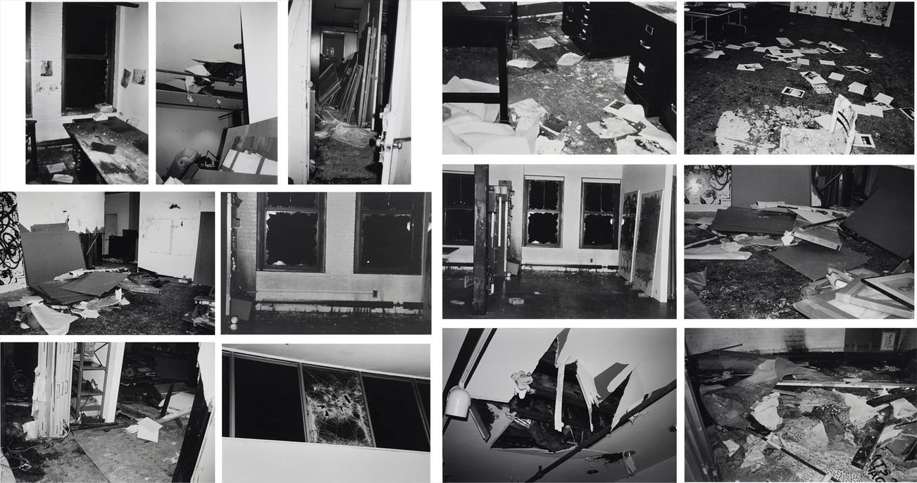 Wool has usually presented his photographs in the form of an artist’s book. When his studio was damaged by fire in 1996, the artist decided to publish a portfolio of the black-and-white photographs he had taken for the insurance company. Incident on 9th Street (1997) documents the fire damage in thirteen silver-gelatin prints that, in their matter-of-fact documentary nature, resemble crime scene investigation photographs. The sensational aspect to them both attracts and repels the viewer, and, like the works of Thomas Demand or Jeff Wall, asks the viewer to consider whether these photo shoots were purposely staged or not.