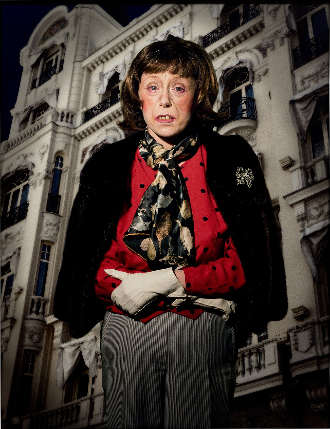 Through mise-en-scène and movie-like make-up and costume, Sherman treats each photograph as a portrait, though never one of herself. She embodies her characters even if only for the image itself. Presenting subversion through mimicry, against tableaus of mass media and image-based messages of pop culture, Sherman takes on both art history and the art world.