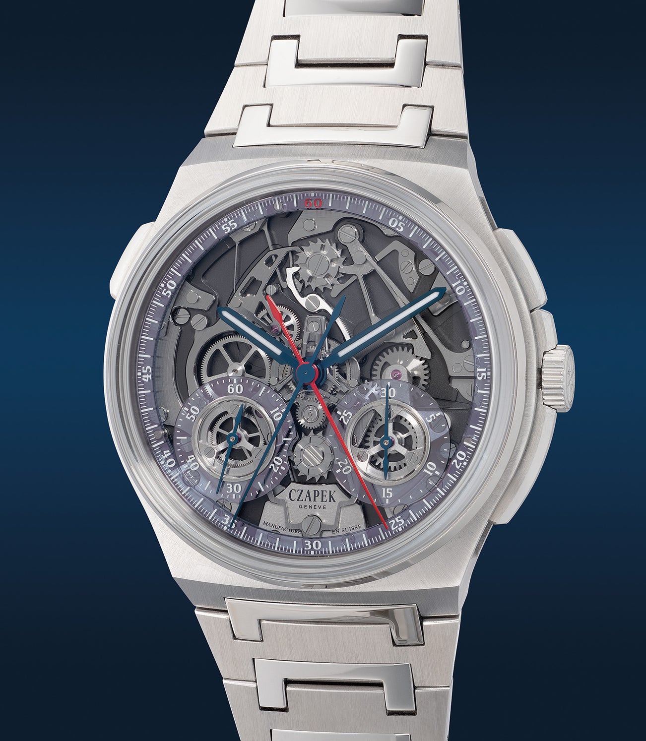 Czapek,「Antarctique Rattrapante Ice Blue」,精美罕有,限量版精鋼追針計時鏈帶腕錶,限量發行99枚,約2023年製。 附原裝證書、配件及錶盒