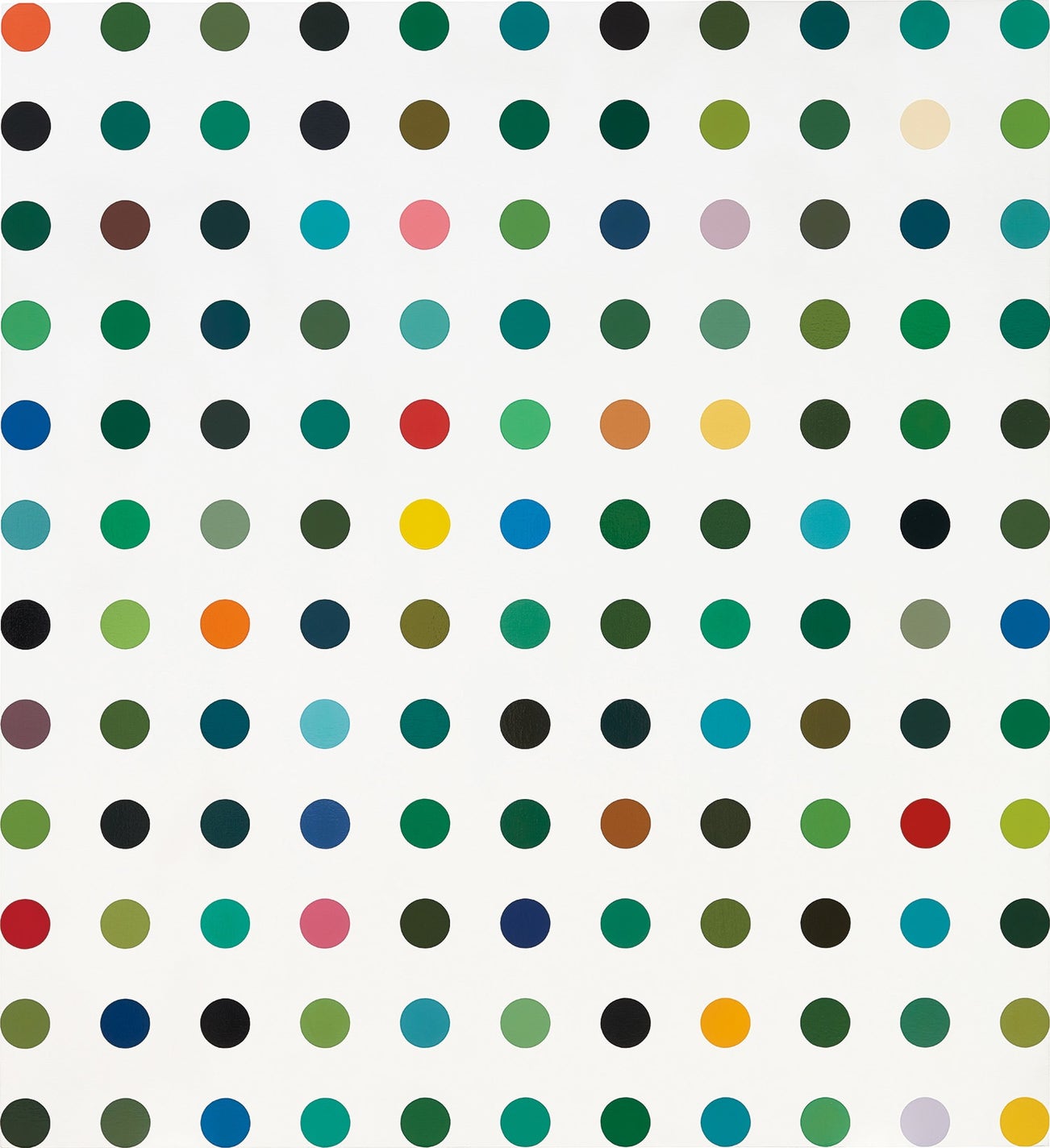 赫斯特在準備他嶄露頭角的展覽《冰凍》(Freeze)時開始對彩色圓點畫進行實驗,將圓點直接繪在倉庫的牆面上。之後,他將此逐漸完善,離開多年來對顏料自發性的實驗和拼貼,試圖在他的圓點畫中抹去人手的痕跡。他設計了一套形式的規則:在一幅畫中不重複出現任何一種顏色,保持圓點大小和形狀的一致,以及一個不變的網格系統,從而能夠讓獨立的作品組合成無限的系列。這是與伴隨他成長的代表著「感情化」和「雜亂」的抽象表現主義繪畫風格的分離: