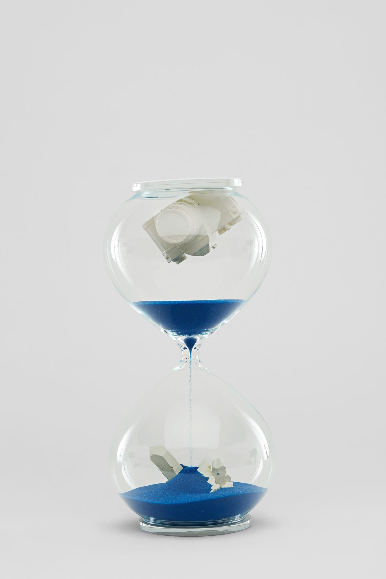 由玻璃、沙子、一隻鑄模微型相機以及石英製作而成,本限量版拍品既是一件藝術品也是一件可用的計時器。當把沙漏翻轉過來時,其中一件物品就顯現出來,而另一件則被藍色沙子所掩蓋。沙子漏完的時間大約為30分鐘,這件作品的本質在於使觀者參與其中的互動性元素。