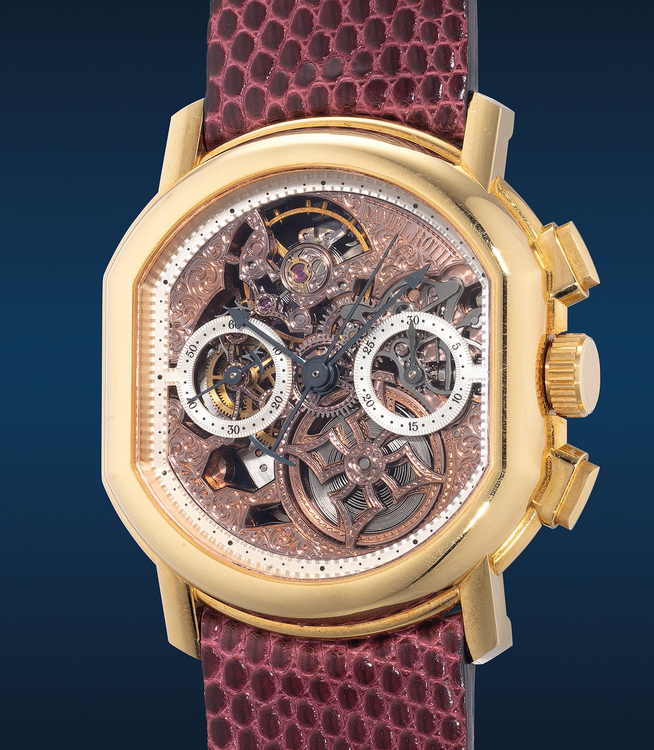 Daniel Roth,型號2147,可能獨一無二及精細優美,黃金鏤空計時腕錶,備玫瑰金雕刻錶盤、機芯,約1990年代製