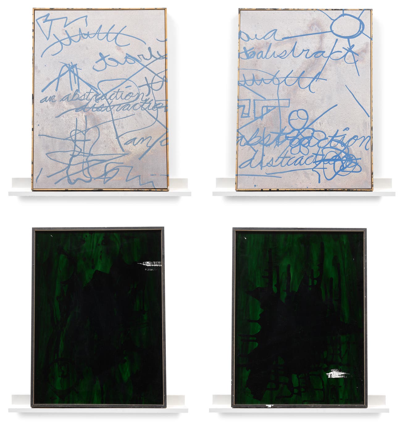 gouache, ink and watercolor on canvas, with wood, glass and transparency film, double-sided, in artist's frames, in 2 parts
