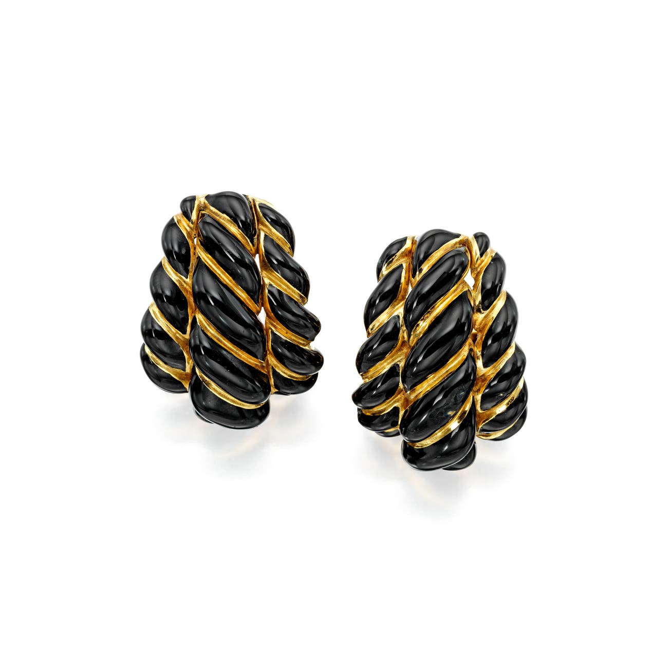 Designed as rope twists applied with black enamel, in 18k yellow gold, measuring approximately 1/3 x 1 1/4 inches, signed Webb.
