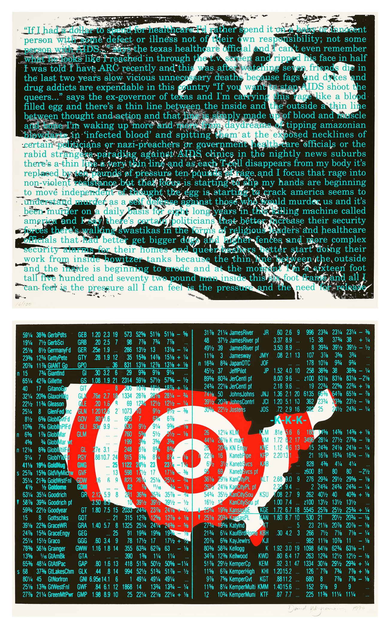 共有100版、數版藝術家試作版,由紐約ACT UP畫廊出版,此為已裱第16版。