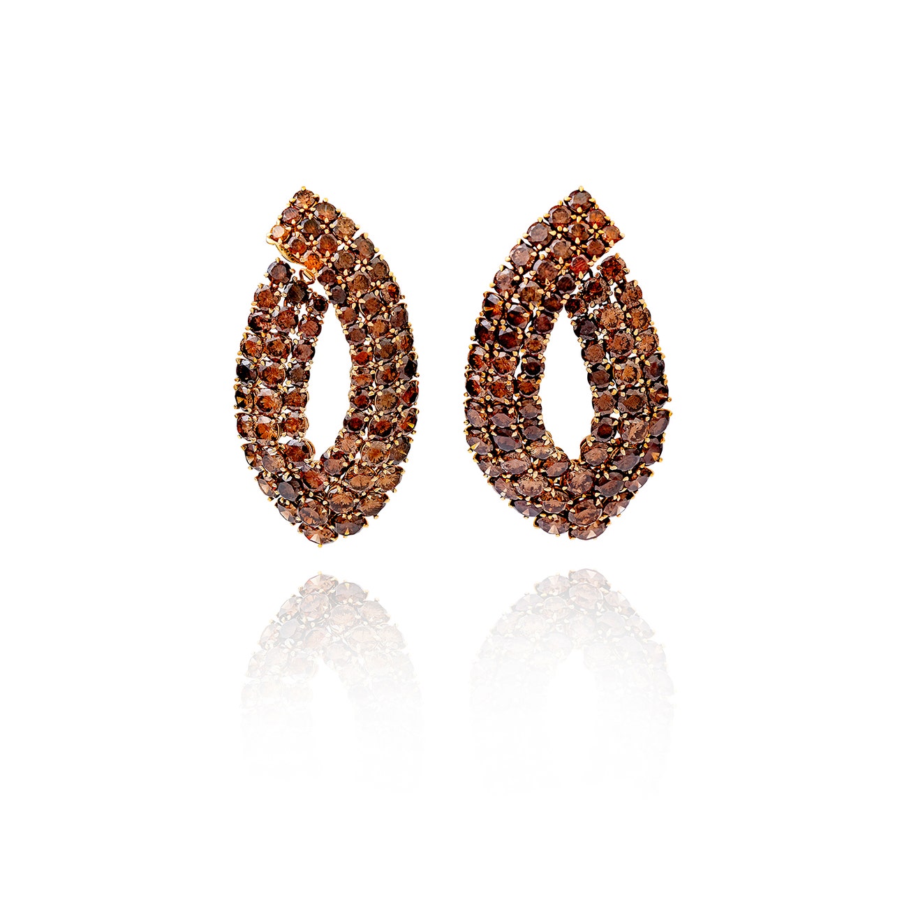 Each of hoop design, set with brilliant-cut diamonds of brown tint, length approximately 55mm, post and clip fittings, pouch stamped de Grisogono.