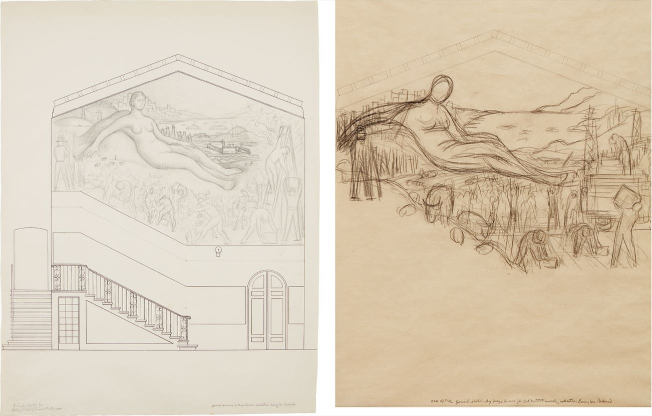 Two works: i) First Study for the mural project at the California School of Fine Arts (CSFA) ii) Second Study for the mural project at the California School of Fine Arts (CSFA)