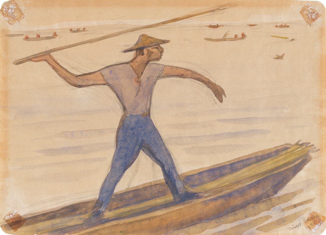 Mexican | B. 1886 D. 1957Diego Rivera began drawing at the age of three, and by ten he was enrolled at the San Carlos Academy in Mexico City. In 1907, he traveled to Europe on a scholarship to continue his artistic studies. Whilst in Paris, Rivera embraced the advent of Cubism, and later Post-Impressionism, taking inspiration from such European artists as Picasso and Cézanne.