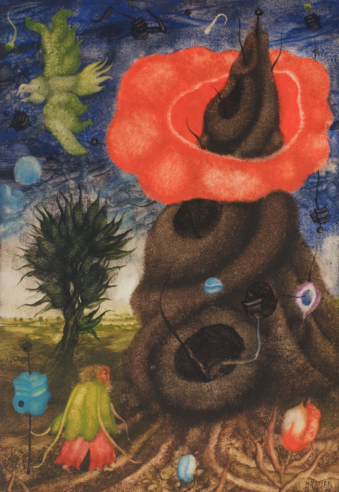 signed "BRAUER" lower right; titled, inscribed and dated ""SCHRAUBENTURM" WIEN 1965" on the reverse