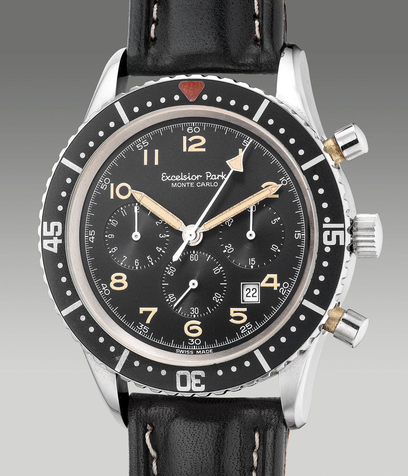 Excelsior Park,「Monte Carlo」型號,限量版精鋼計時腕錶,備日期顯示,限量發行50枚,編號21號,約1980年製