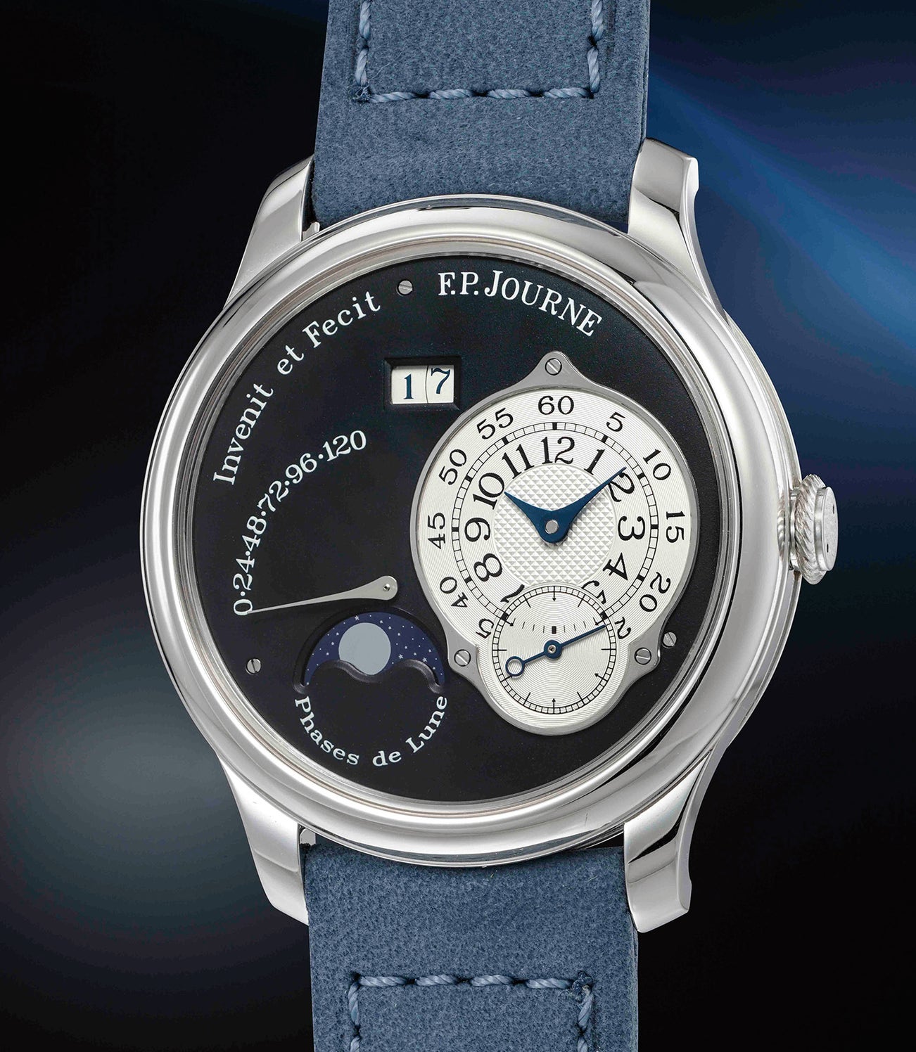 F.P. Journe,極度罕有,鉑金腕錶,備黑色錶盤、大型日期、動力儲存、月相顯示。附保證書及錶盒—同型號目前僅知的六枚之一