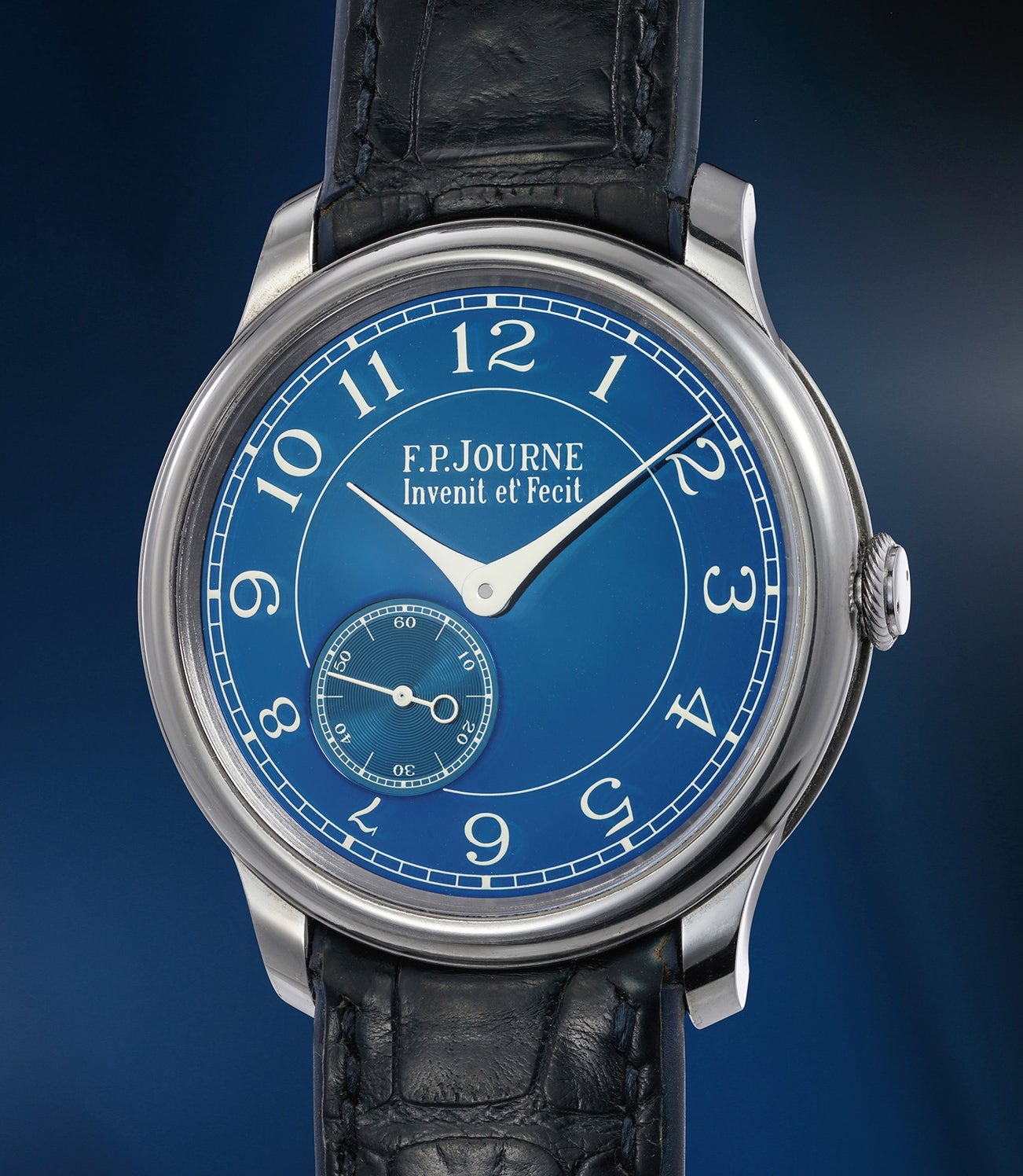 With its tantalum case with grey/blue hue and its incredible chrome blue dial, F.P. Journe’s Chronomètre Bleu has entered the exclusive realm of timepieces that can be immediately recognized.