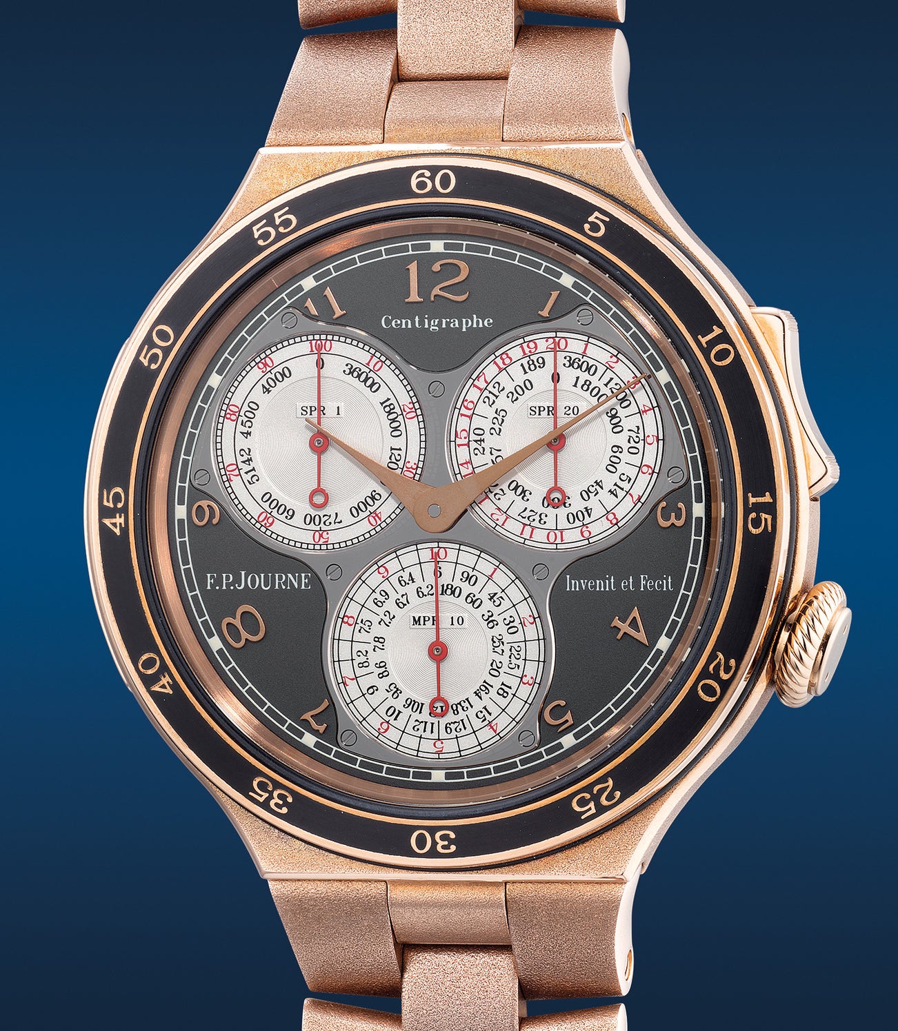 F.P. Journe,「LineSport Centigraphe Souverain」型號,玫瑰金計時鏈帶腕錶,備1/100秒、20秒及10分鐘子盤,約2020年製。附原裝證書、錶盒