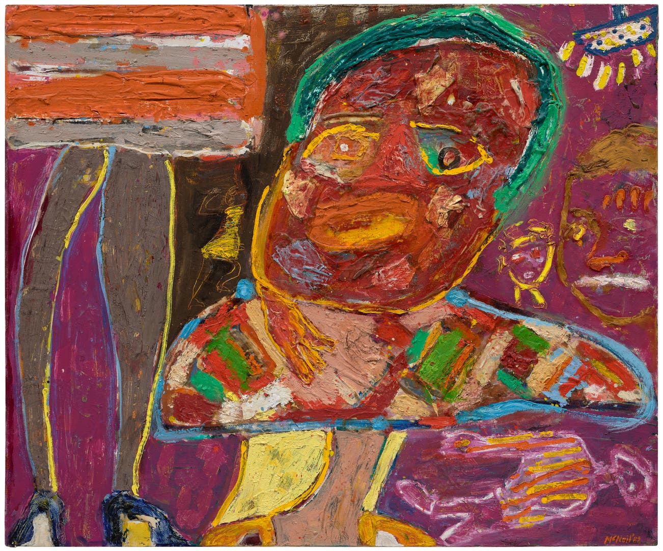signed and dated "McNeil '82" lower right; signed, titled, inscribed and dated "George McNeil WELL!! 1982 RK PEC: 82.12" on the reverse
