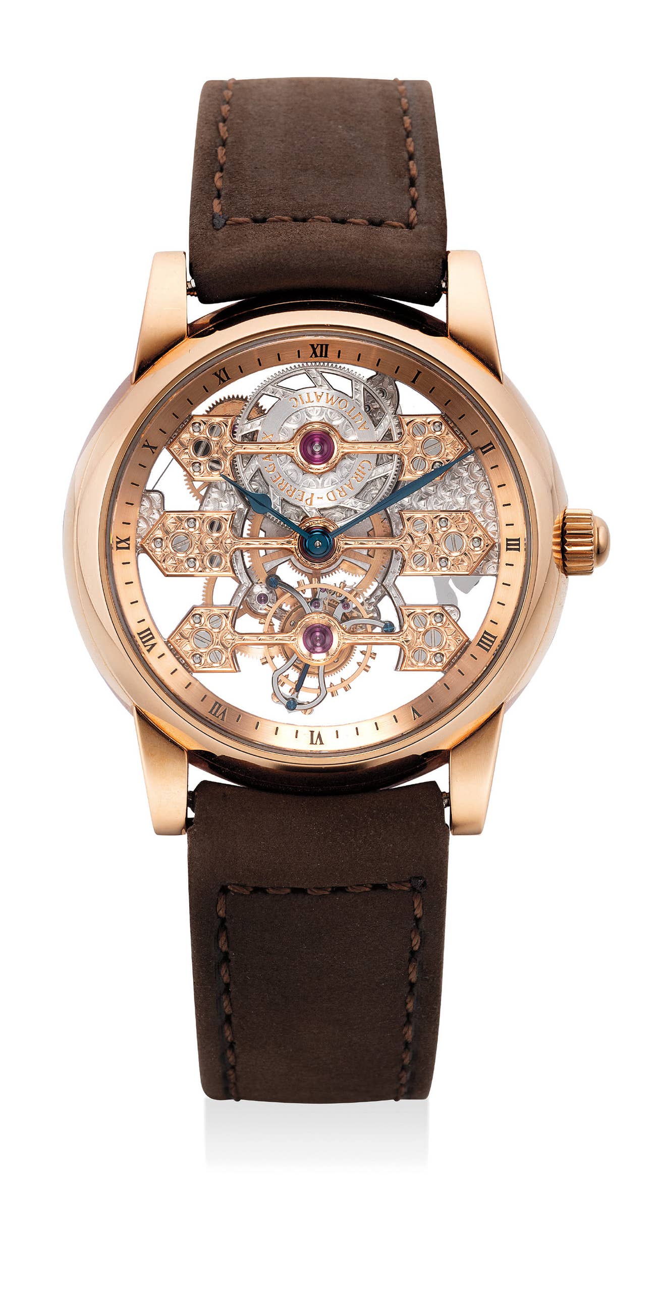 芝柏,型號9906,十分精細及罕有,18K玫瑰金鏤空自動上弦腕錶,配三金橋陀飛輪,編號第16號,約2006年製。附原裝錶盒、原裝證書