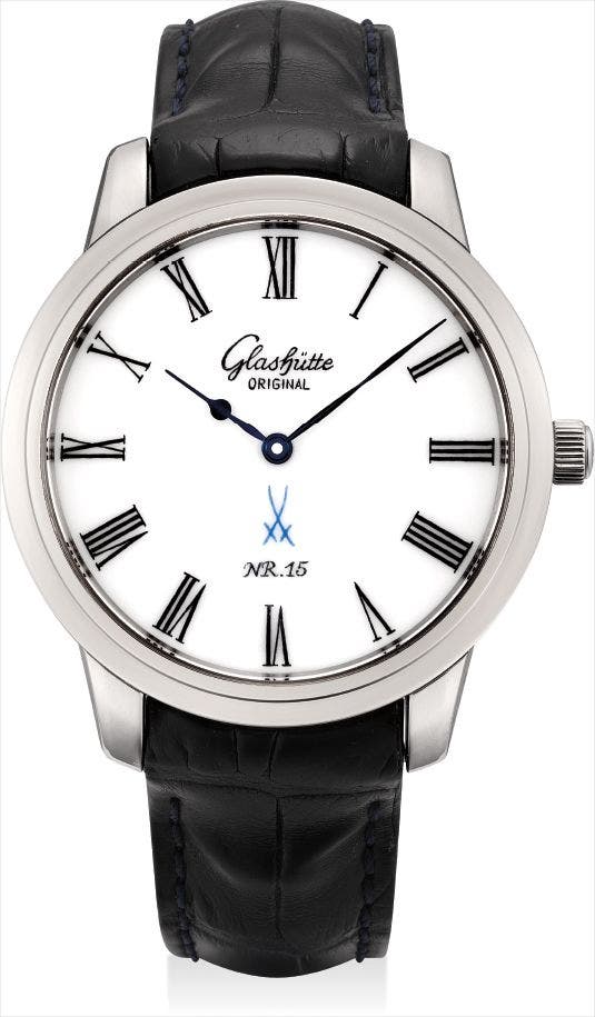 格拉蘇蒂,18K白金自動上弦腕錶,配梅森陶瓷錶盤,“Senator Meissen”,約2014年製