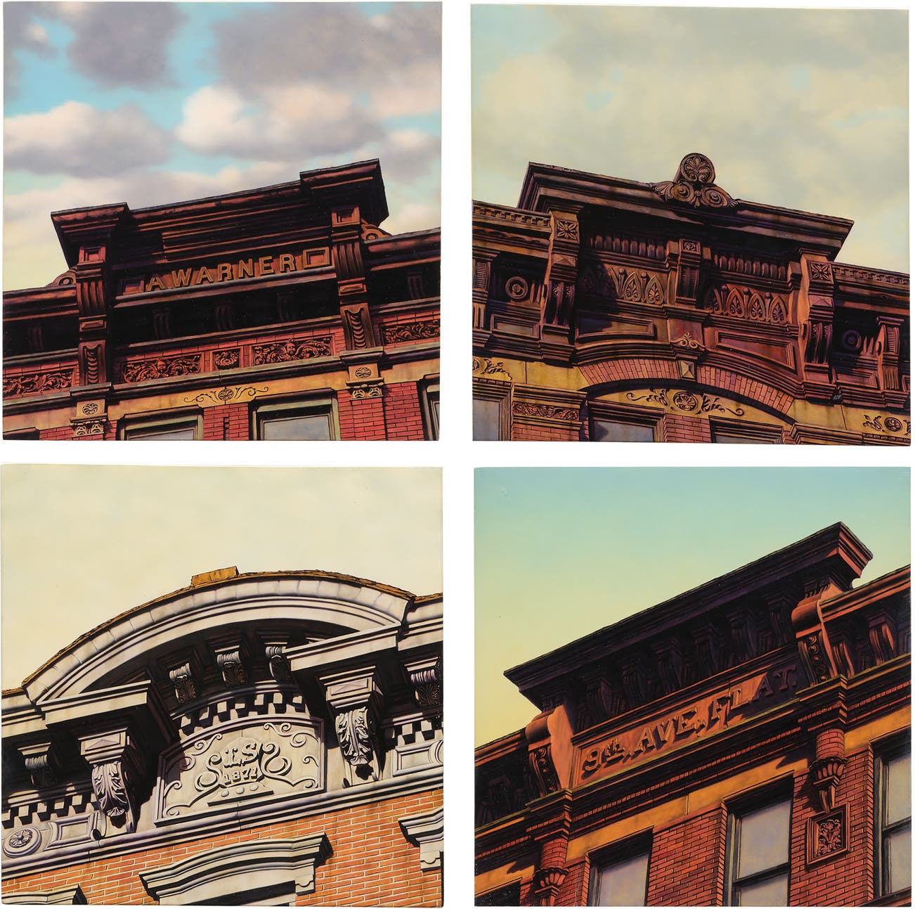 Four works from the Cornice series: (i) A. Warner; (ii) L.S. 1871; (iii) Seventh and Tenth; (iv) Ninth Avenue Flat
