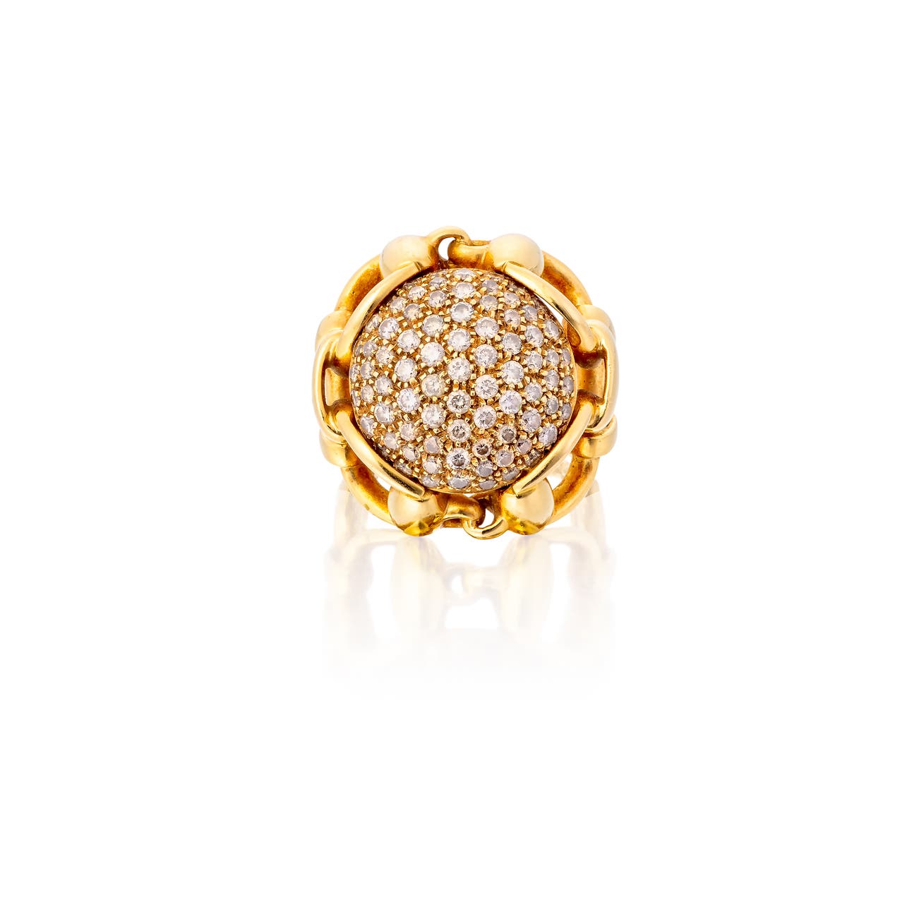 Of domed design, set with brilliant-cut diamonds and with interlocking gold link details, size 49, signed Gucci, Italian maker's mark and assay mark for gold.