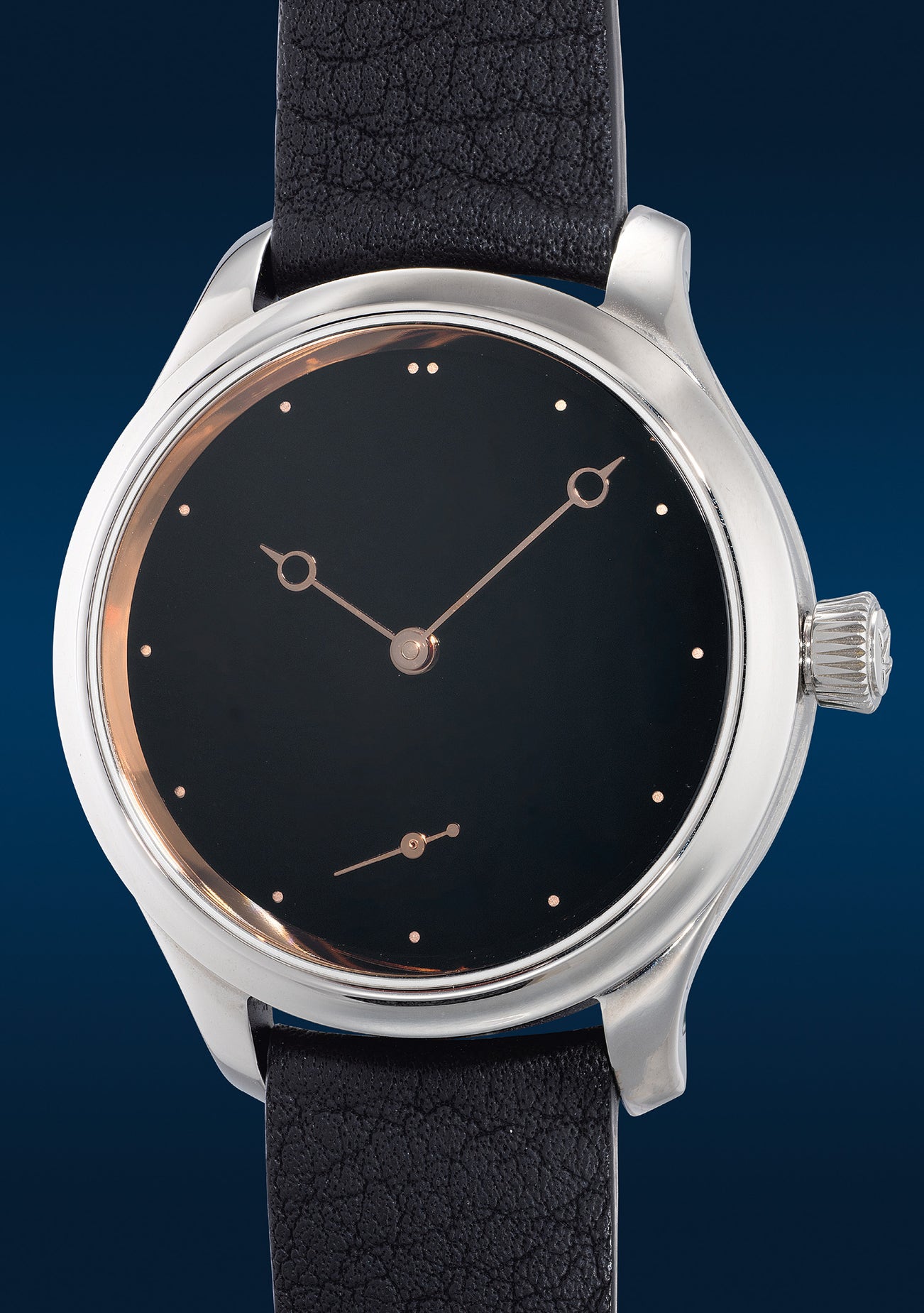 In an unprecedented collaboration between H. Moser & Cie and The Armoury, the Endeavour Small Seconds Total Eclipse was conceived, embodying the distinct design codes of the star-crossed houses. Despite coming from different industries, the independent watchmaker and menswear brand both have a deep admiration for refinement and utmost elegance. Drawing from the recent Solar Eclipse, the present model was launched in January 2022 with two references, 1327-1200 and 1327-1201, delivered with stainless steel or pink gold accents.