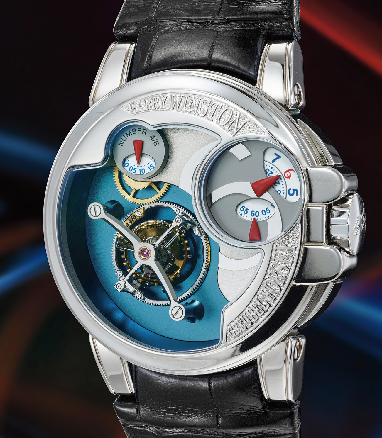 海瑞溫斯頓及Greubel Forsey,精細,白金30°雙陀飛輪腕錶,限量發行6枚,編號第4號。