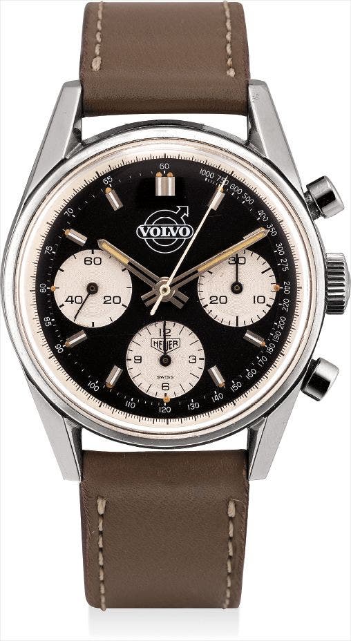 <em>Case, dial and movement signed, dial further signed for Volvo</em>