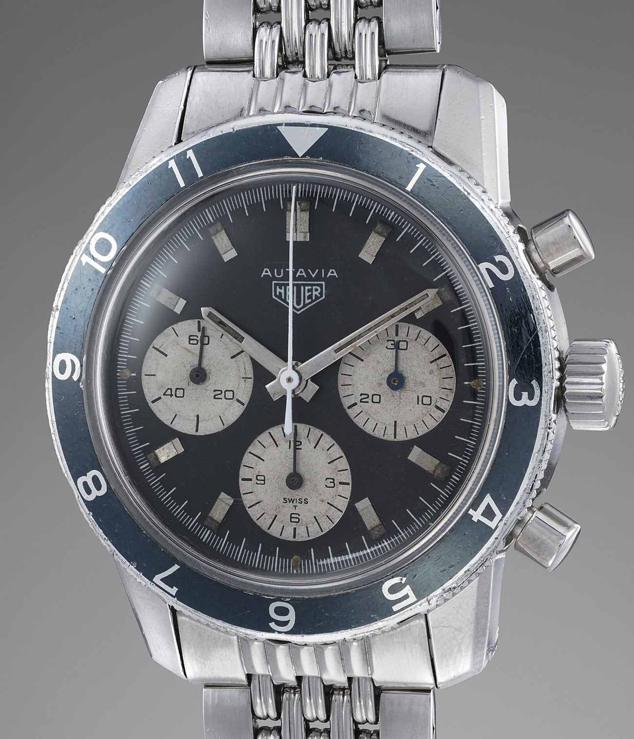 But what makes the present watch special and distinguishes it from its peers is the engraving on the caseback. This watch had a totally different destiny than the normal production as it was commissioned by the Argentinian Air Force for their pilots. Bearing the FAA, Fuerza Aerea Argentina emblem along with the issued number 0823, the watch was on duty in the early 1970s. Jack Heuer designed the Autavia as the perfect chronograph for racing, using a strong contrasting color scheme on the dial to improve readability in precarious situations. This contrast between the color of the dial and the one of the subdials also made it a suitable watch to be used by Air Forces around the world.