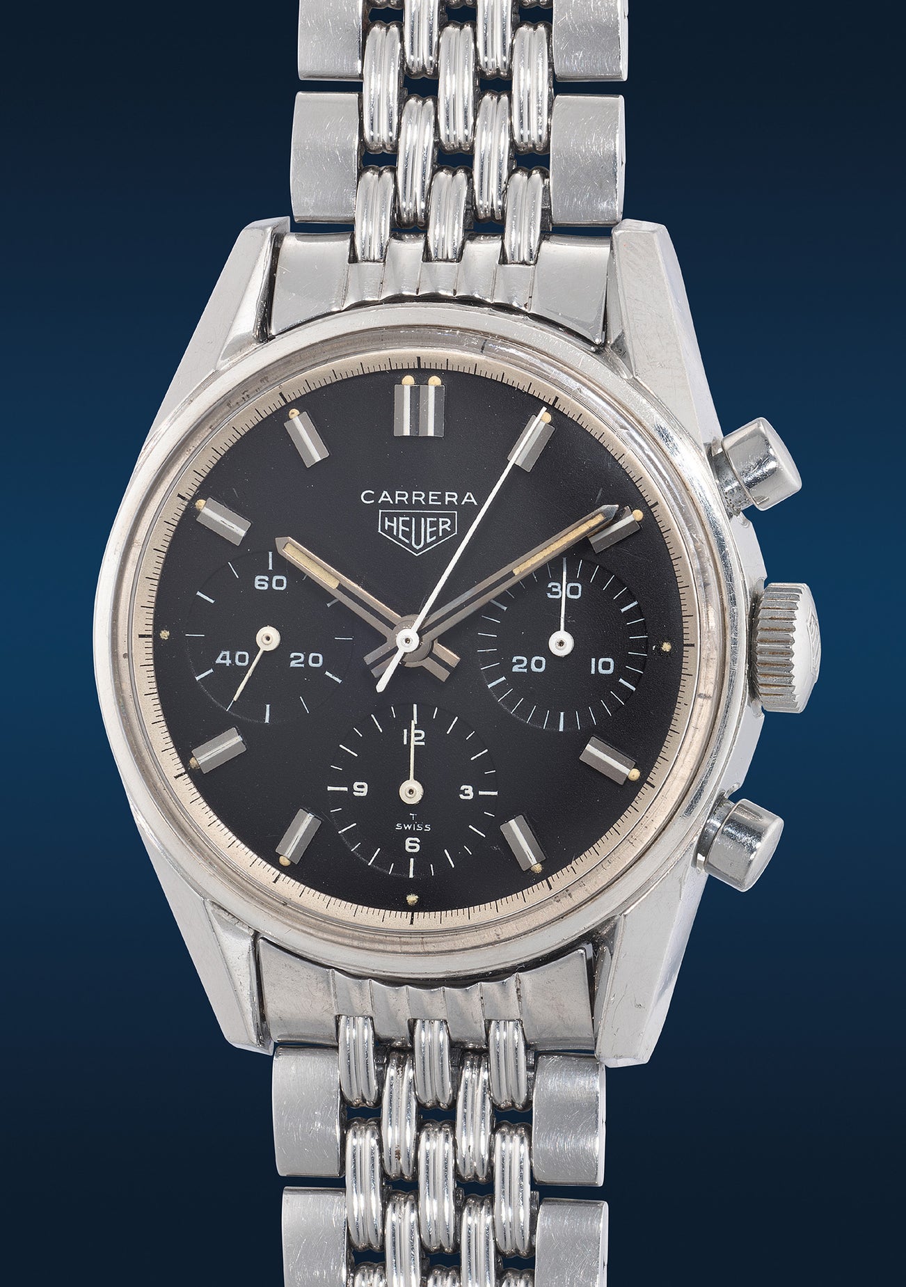 豪雅,「Carrera」型號2447N,精鋼計時鏈帶腕錶,約1970年代製