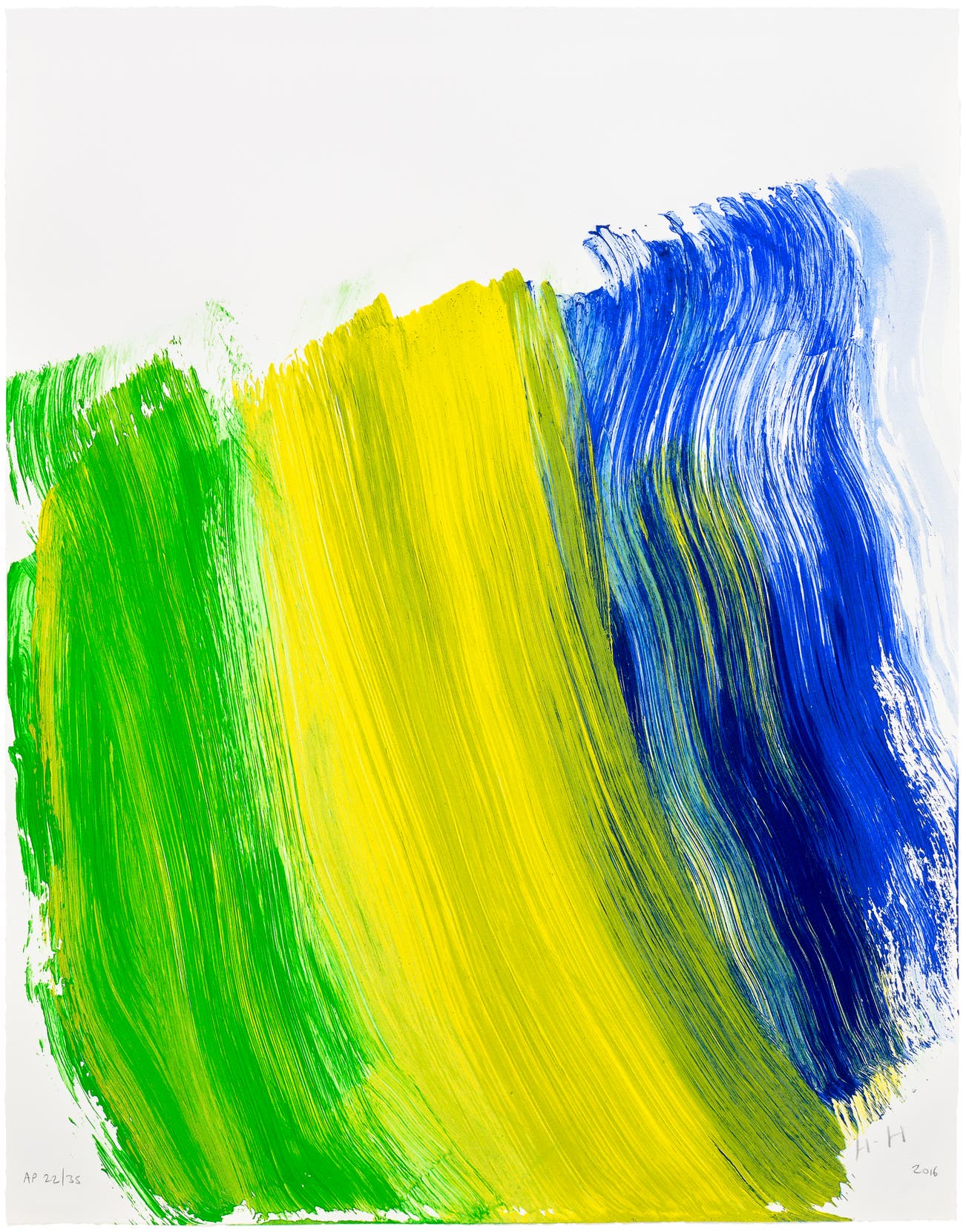 The seemingly casual, urgent quality of his paintings and prints belies a drawn-out process of making: it could take a year for Hodgkin to prepare to execute a single brushstroke. The resultant maximalist, saturated works on canvas, paper, wood and board can be intimately scaled and jewel-like, or oversized, opulent and theatrical. Whilst his early compositions have a collaged, geometric flatness, Hodgkin's later work (including etching and aquatint prints) increasingly incorporated more lush surface textures and complex, fluid patterns reminiscent of the Pahari miniatures from India, of which he was an avid collector.