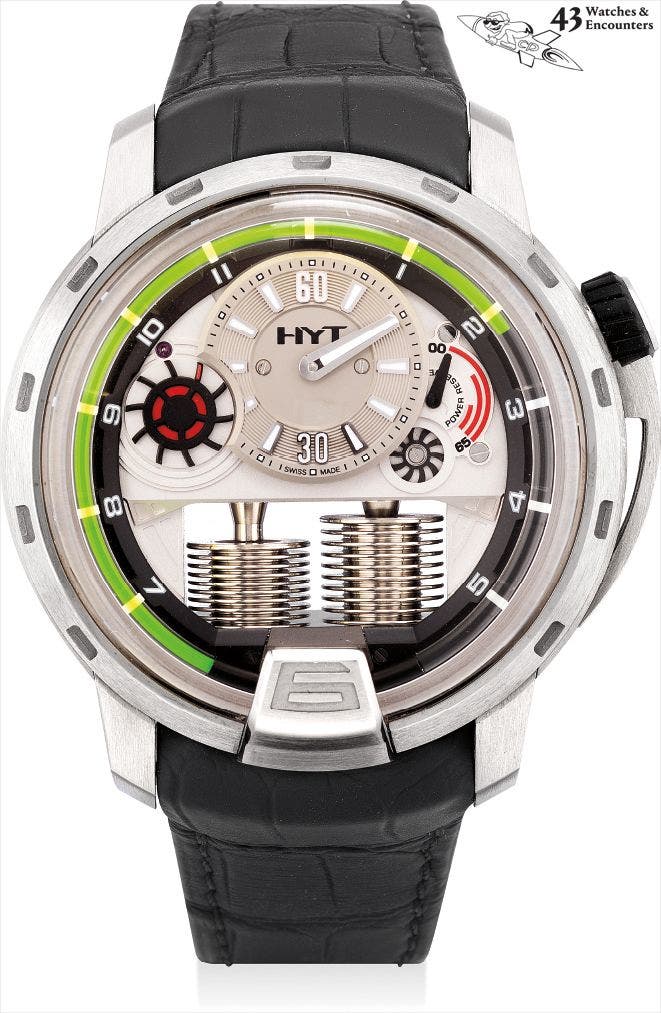 HYT,精細及罕有,鈦金屬半鏤空腕錶,配逆叔液體小時顯示、動力儲存、足球及USB,“H1”,型號148-DL-21-GF-RU,約2014年製