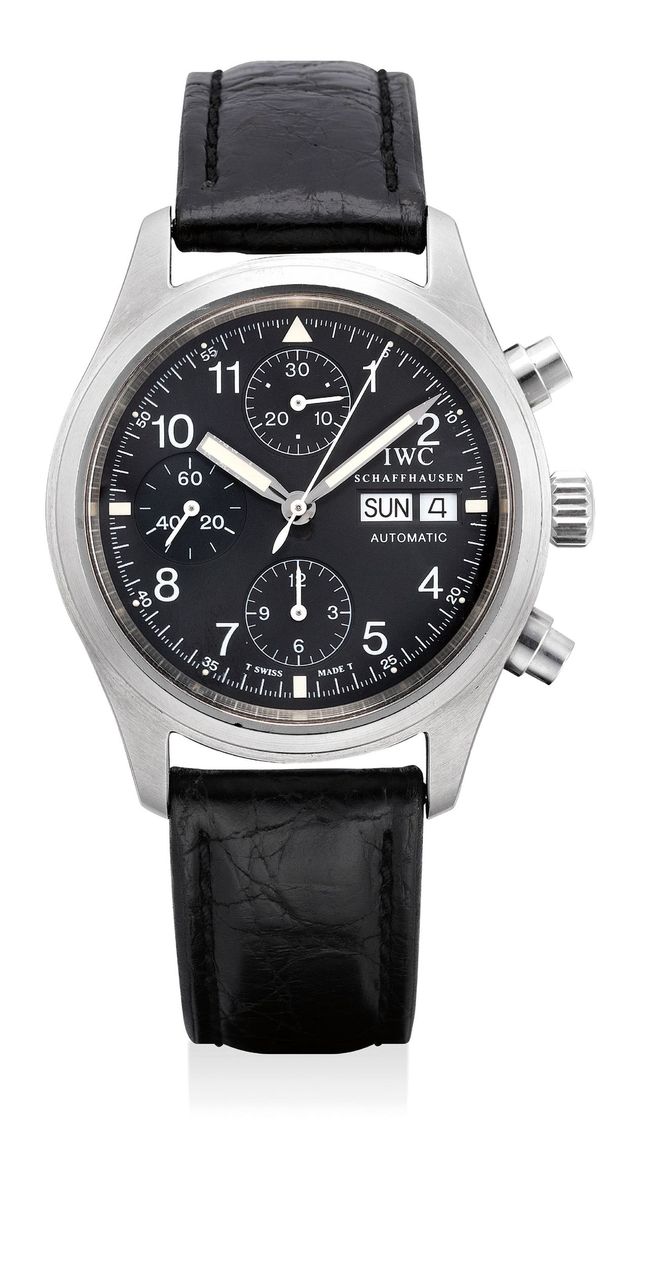 萬國,型號3706,精鋼自動上弦腕錶,配計時功能、日期和星期顯示,約1998年製