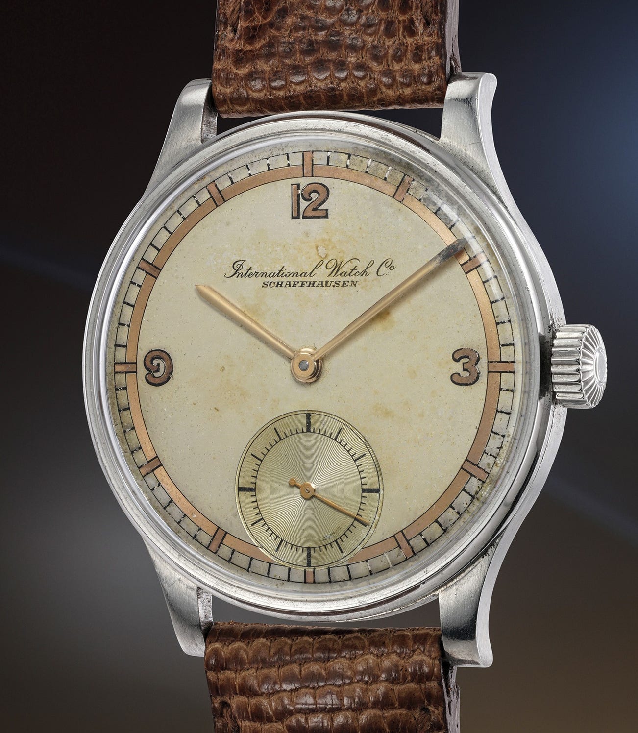 The present lot's rarity should be enough to attract any collector's interest, but these features are further accentuated by this Portugieser's appealing case condition and gorgeously aged dial with large Arabic indexes and an elegant pink gold outer minute track, which give this timepiece an incredible vintage vibe.