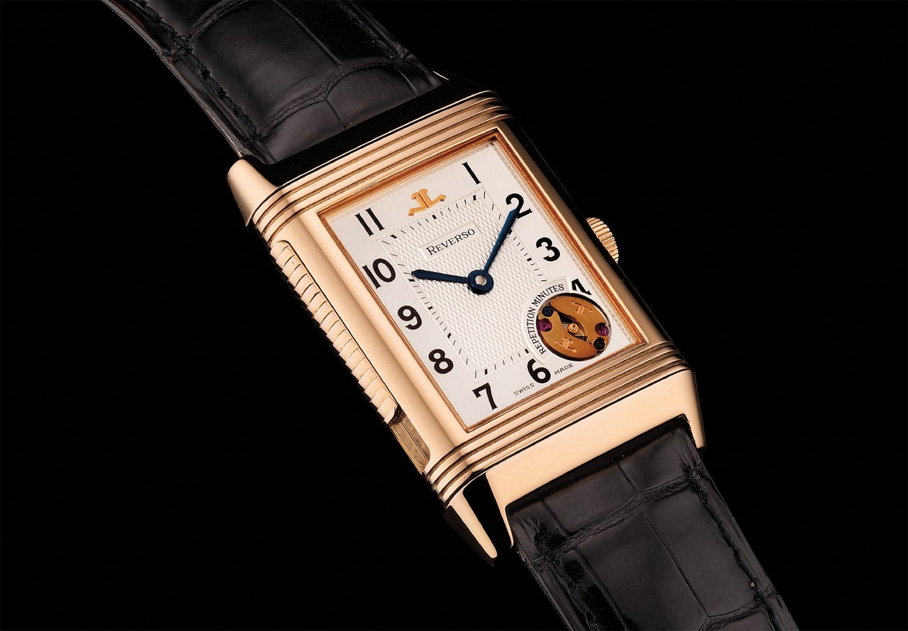 積家,「Reverso」型號270.2.73,限量版18K玫瑰金翻轉式三問腕錶,限量發行500枚,編號第465號,約1999年製。附錶盒和證書