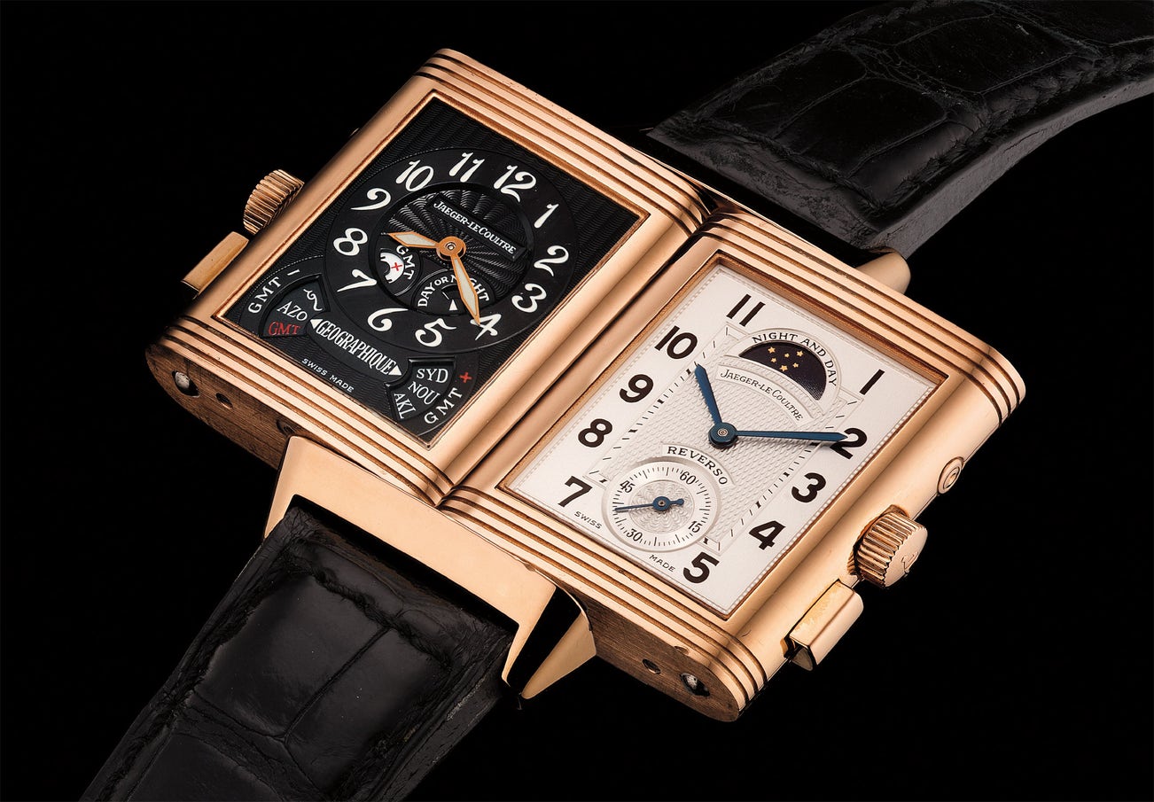 積家,「Reverso」型號270.2.58,限量版18K玫瑰金翻轉式腕錶,配兩地時區和日夜顯示功能,限量發行500枚,編號第400號,約1999年製。附錶盒和證書