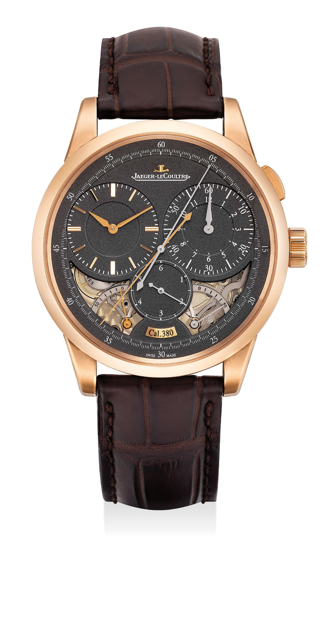 積家,「Duomètre à Chronographe」型號600.2.28.S,十分精細,18K玫瑰金腕錶,配跳秒、單按鈕計時功能、雙重動力儲存,2016年製。附原裝錶盒和原裝證書