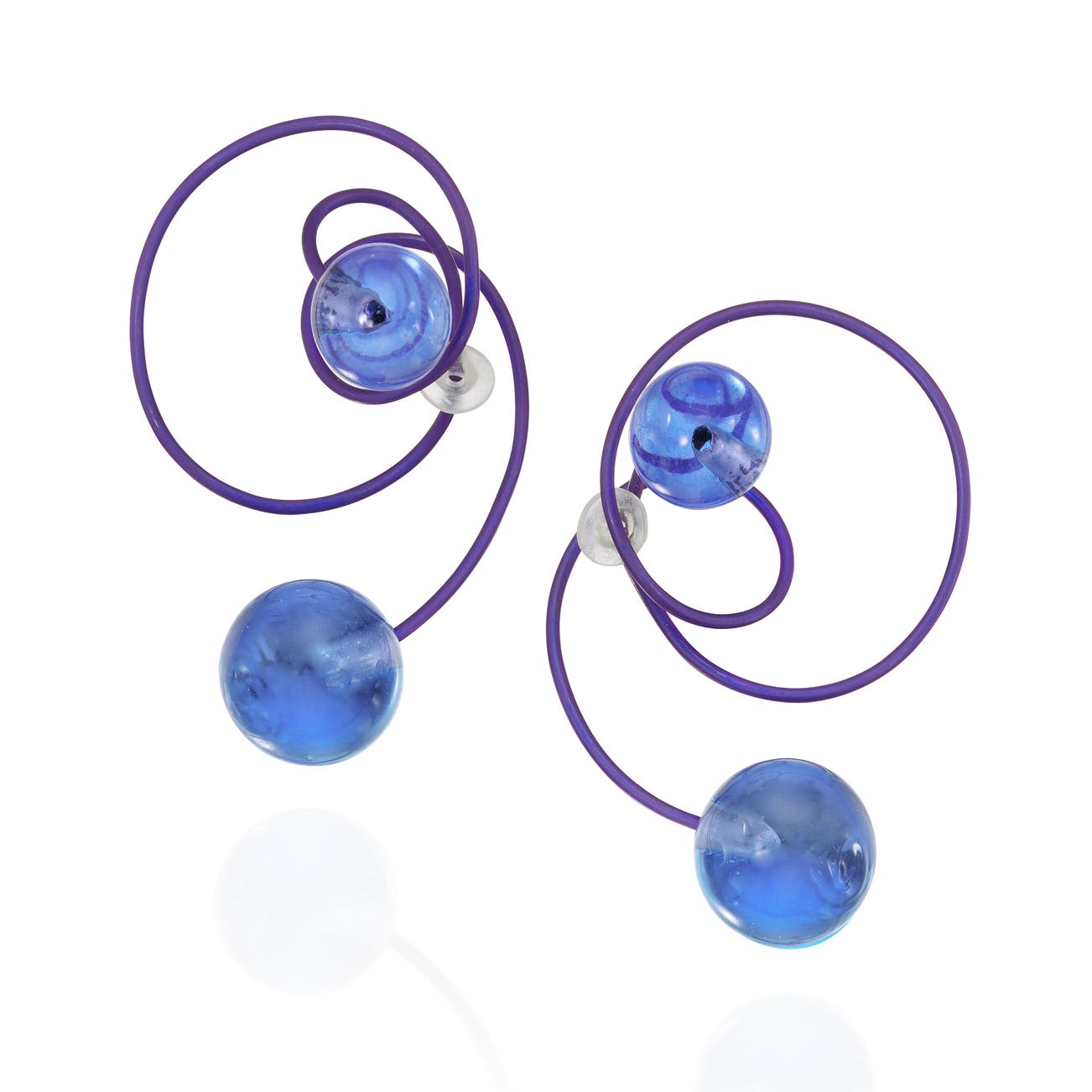 Pair of Titanium and Glass Ear Clips, 'Carnaval de Venise'