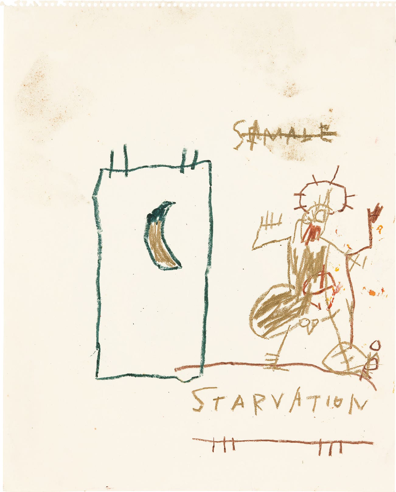 Basquiat's iconoclastic oeuvre revolves around the human figure. Exploiting the creative potential of free association and past experience, he created deeply personal, often autobiographical, images by drawing liberally from such disparate fields as urban street culture, music, poetry, Christian iconography, African-American and Aztec cultural histories and a broad range of art historical sources.