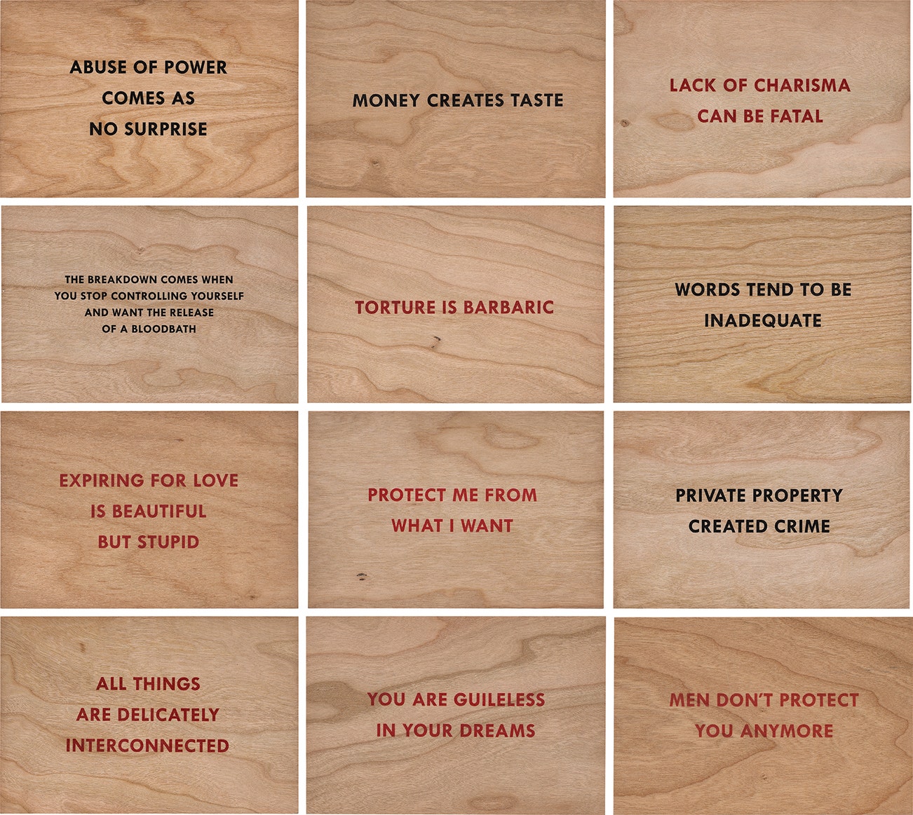 American | 1950Jenny Holzer is a Conceptual artist best known for her text-based public art projects. Holzer's work speaks of violence, oppression, sexuality, feminism, power, war and death. Throughout the years, Holzer has employed a variety of media, from a T-shirt to a plaque to an LED sign. Starting in the 1970s with the New York City posters, and continuing through her recent light projections on landscape and architecture, she uses her art as a form of communication and commentary. Holzer's art hangs in important collections around the globe including 7 World Trade Center, the Venice Biennale, the Guggenheim Museums in New York and Bilbao and the Whitney Museum of American Art.