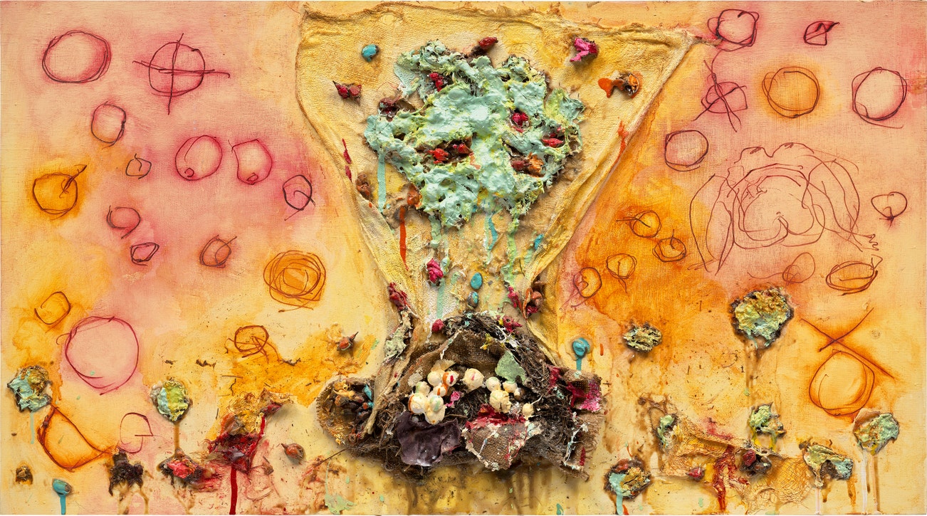 油彩 壓克力 草藥 種子 木球 布料 木板