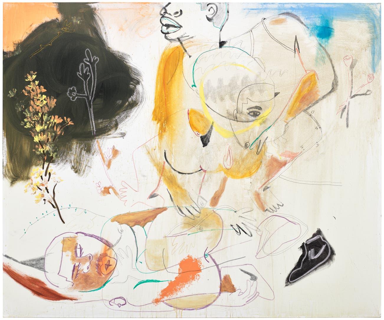 acrylic, oilstick and spray paint on canvas