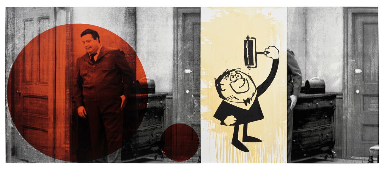 oil, flashe and acrylic ink on canvas and oil, flashe and acrylic ink on canvas laid on board, in 5 parts