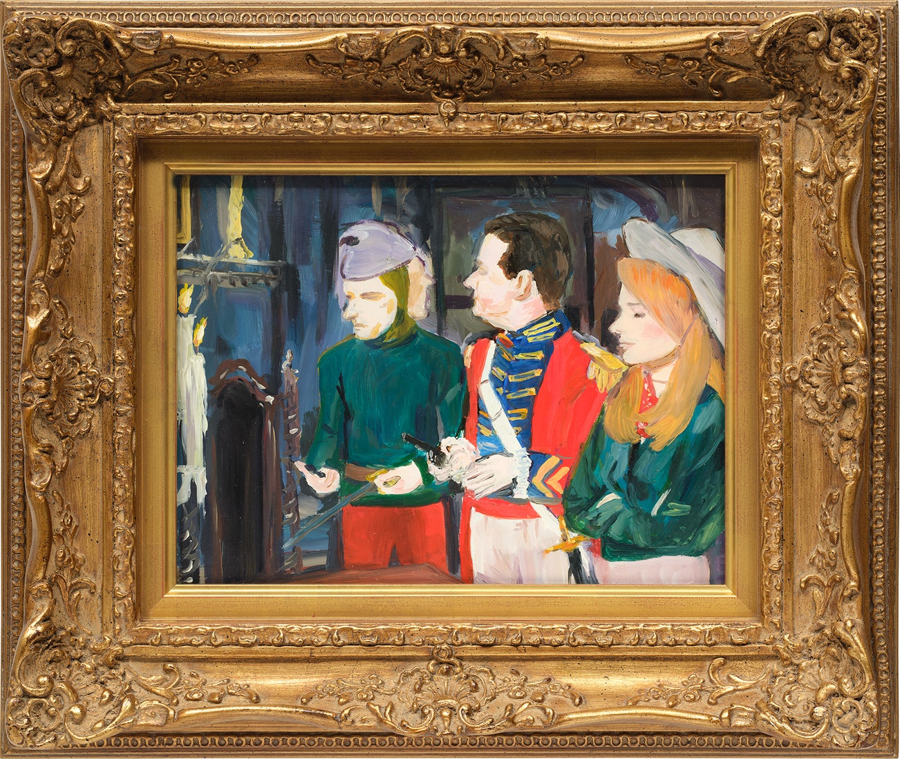 signed and dated "Sept 1 '06 May 25 '07 May 26 '07 June 6 '07 June 7 '07 Karen Kilimnik" on the reverse; titled "Janus, the debonair general + the cowgirl (asleep, or thinking of a spell) in the deserted island manor house on dark + stormy night" on the stretcher