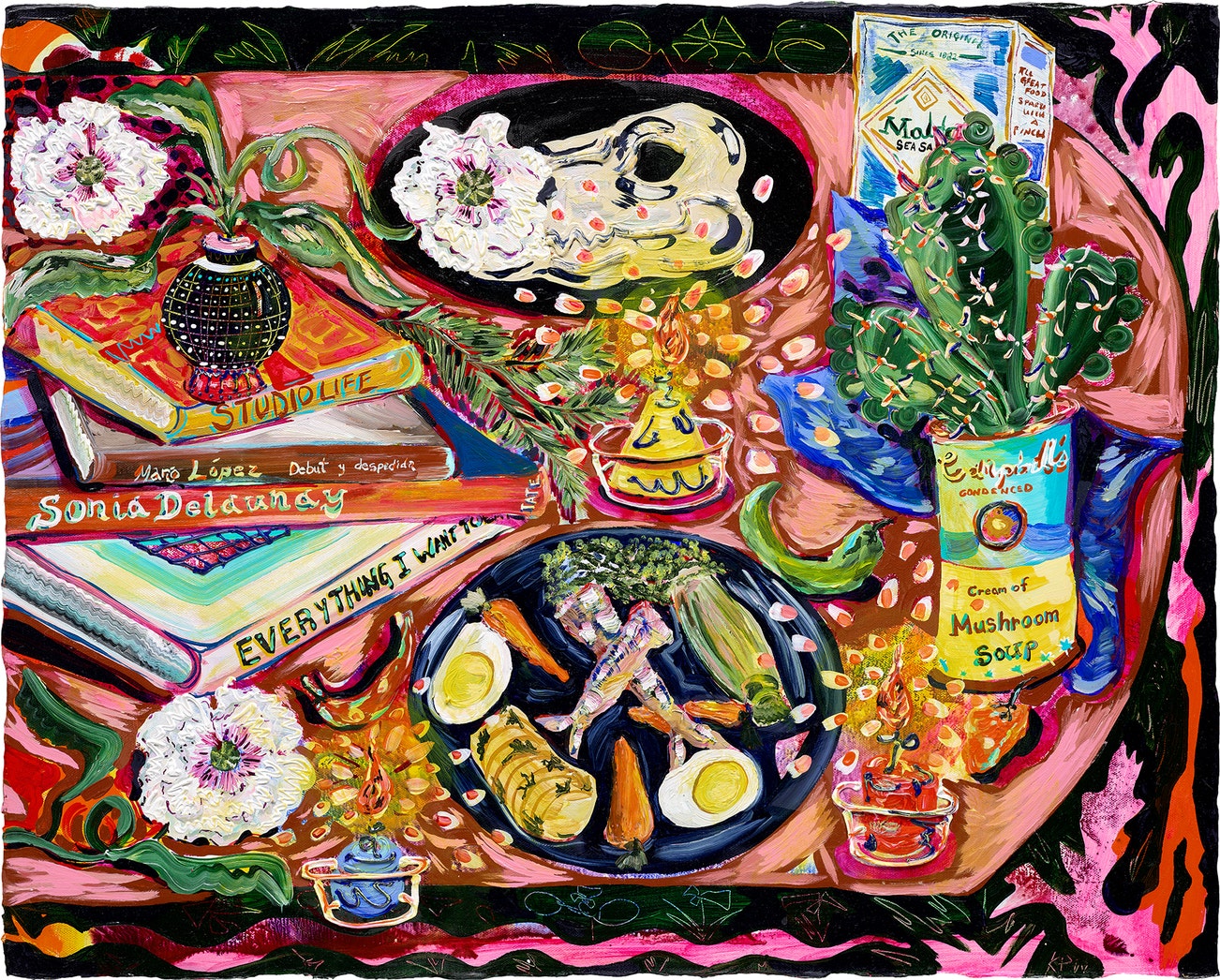 款識:KPW(右下方)"FEAST IN THE NEON JUNGLE: Rose of Jericho (Winter's Solstice)" Kate Pincus-Whitney 2020(畫背)