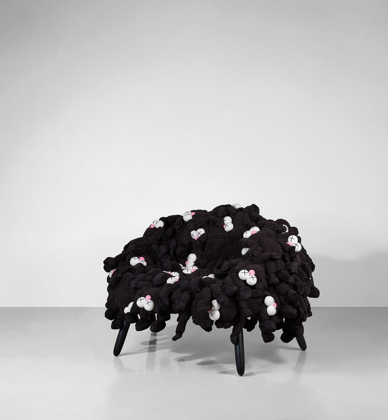 signed, titled and numbered 'CAMPANA KAWS CHAIR BLACK #17/25+3 AP' on a label affixed to the underside; signed 'KAWS' on the underside of the feet to some stuffed toy elements