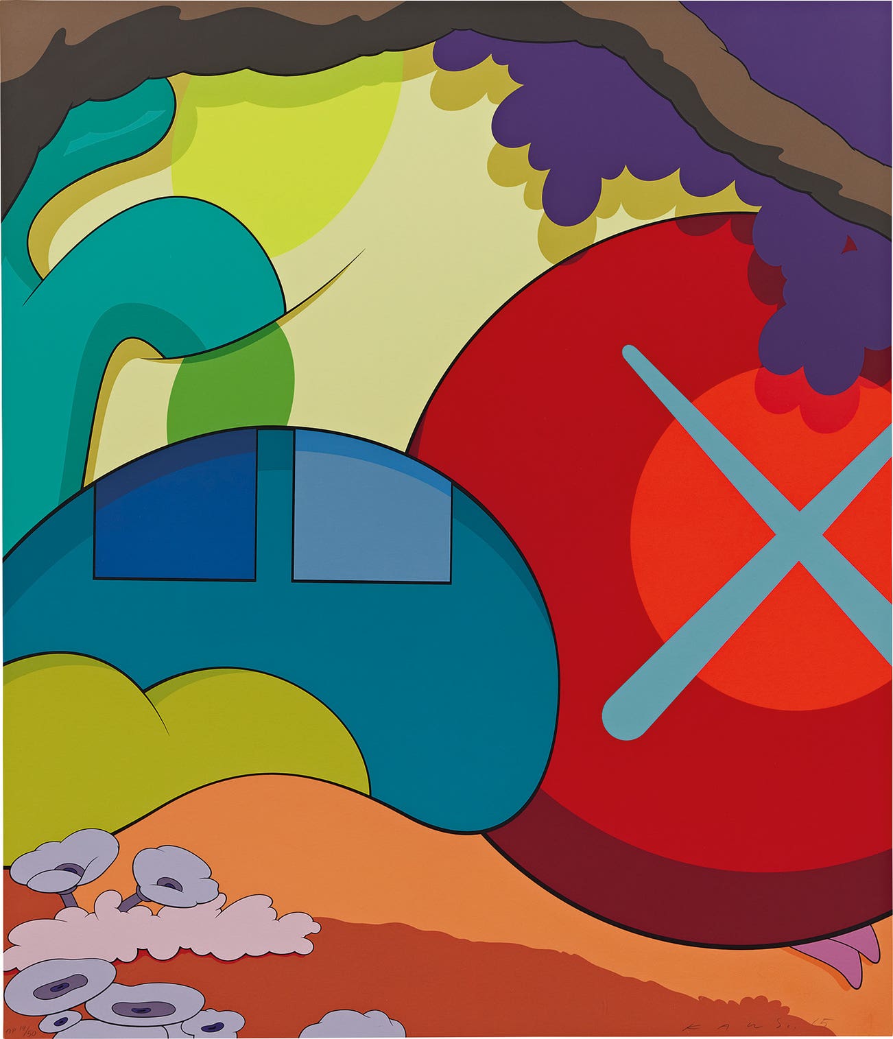 Perhaps he is most known for his larger-than-life fiberglass sculptures that supplant the body of Mickey Mouse onto KAWS' own imagined creatures, often with 'x'-ed out eyes or ultra-animated features. However, KAWS also works frequently in neon and vivid paint, adding animation and depth to contemporary paintings filled with approachable imagination. There is mass appeal to KAWS, who exhibits globally and most frequently in Asia, Europe and the United States.