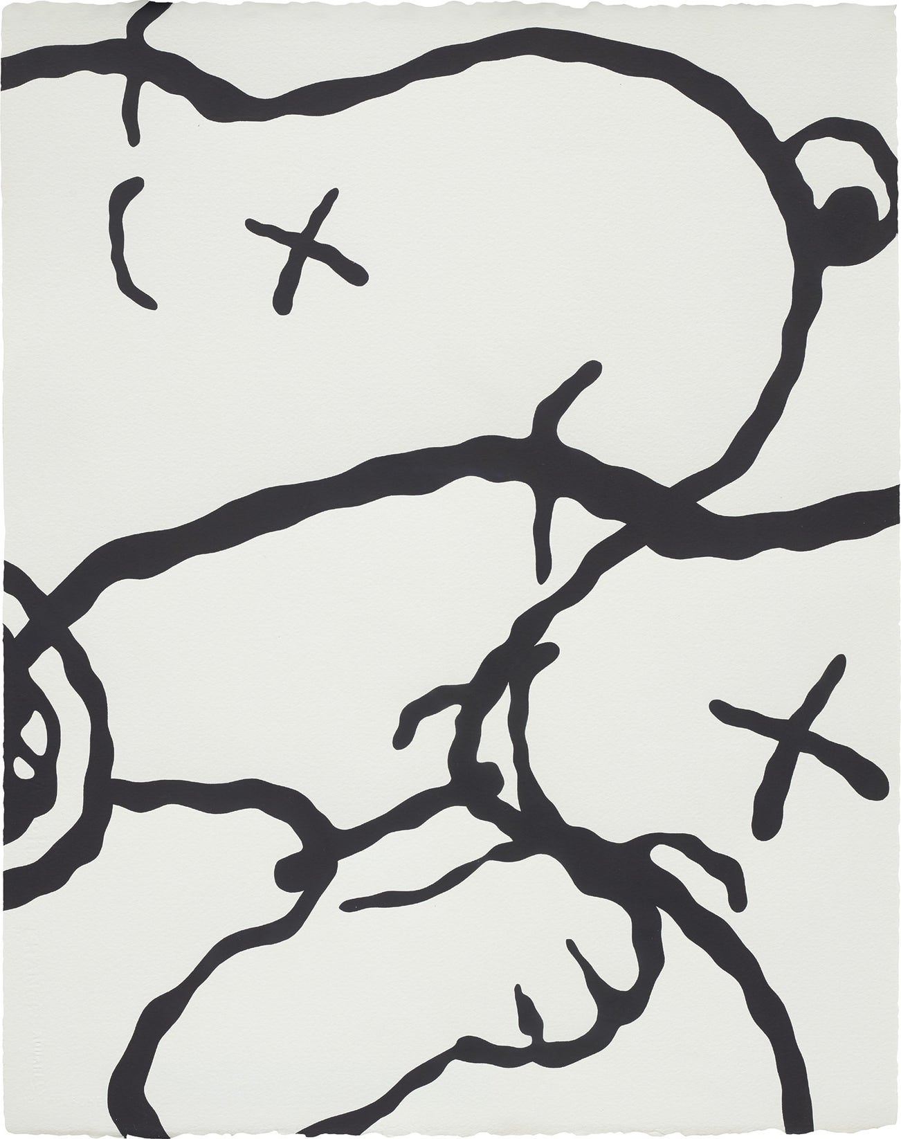 Perhaps he is most known for his larger-than-life fiberglass sculptures that supplant the body of Mickey Mouse onto KAWS' own imagined creatures, often with 'x'-ed out eyes or ultra-animated features. However, KAWS also works frequently in neon and vivid paint, adding animation and depth to contemporary paintings filled with approachable imagination. There is mass appeal to KAWS, who exhibits globally and most frequently in Asia, Europe and the United States.