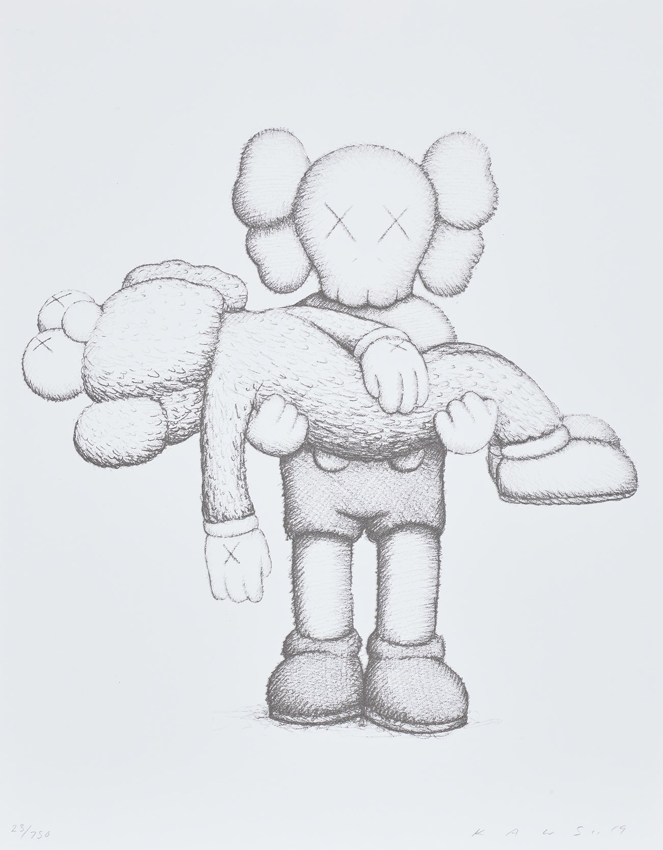 Perhaps he is most known for his larger-than-life fiberglass sculptures that supplant the body of Mickey Mouse onto KAWS' own imagined creatures, often with 'x'-ed out eyes or ultra-animated features. However, KAWS also works frequently in neon and vivid paint, adding animation and depth to contemporary paintings filled with approachable imagination. There is mass appeal to KAWS, who exhibits globally and most frequently in Asia, Europe and the United States.