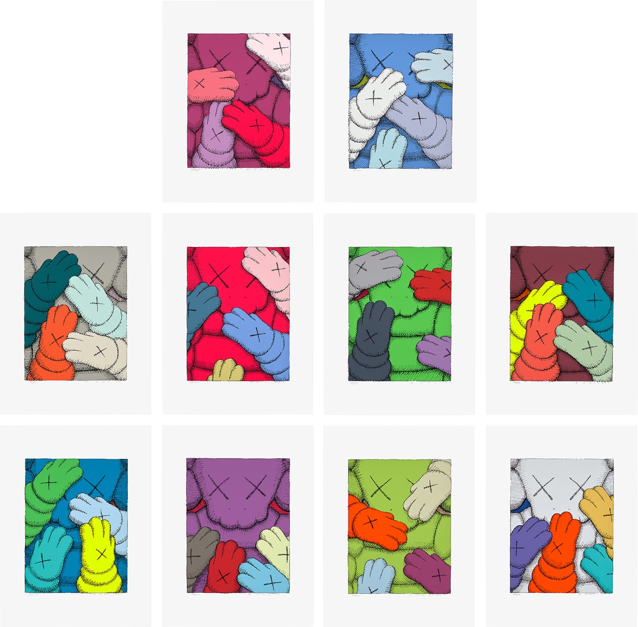 Perhaps he is most known for his larger-than-life fiberglass sculptures that supplant the body of Mickey Mouse onto KAWS' own imagined creatures, often with 'x'-ed out eyes or ultra-animated features. However, KAWS also works frequently in neon and vivid paint, adding animation and depth to contemporary paintings filled with approachable imagination. There is mass appeal to KAWS, who exhibits globally and most frequently in Asia, Europe and the United States.