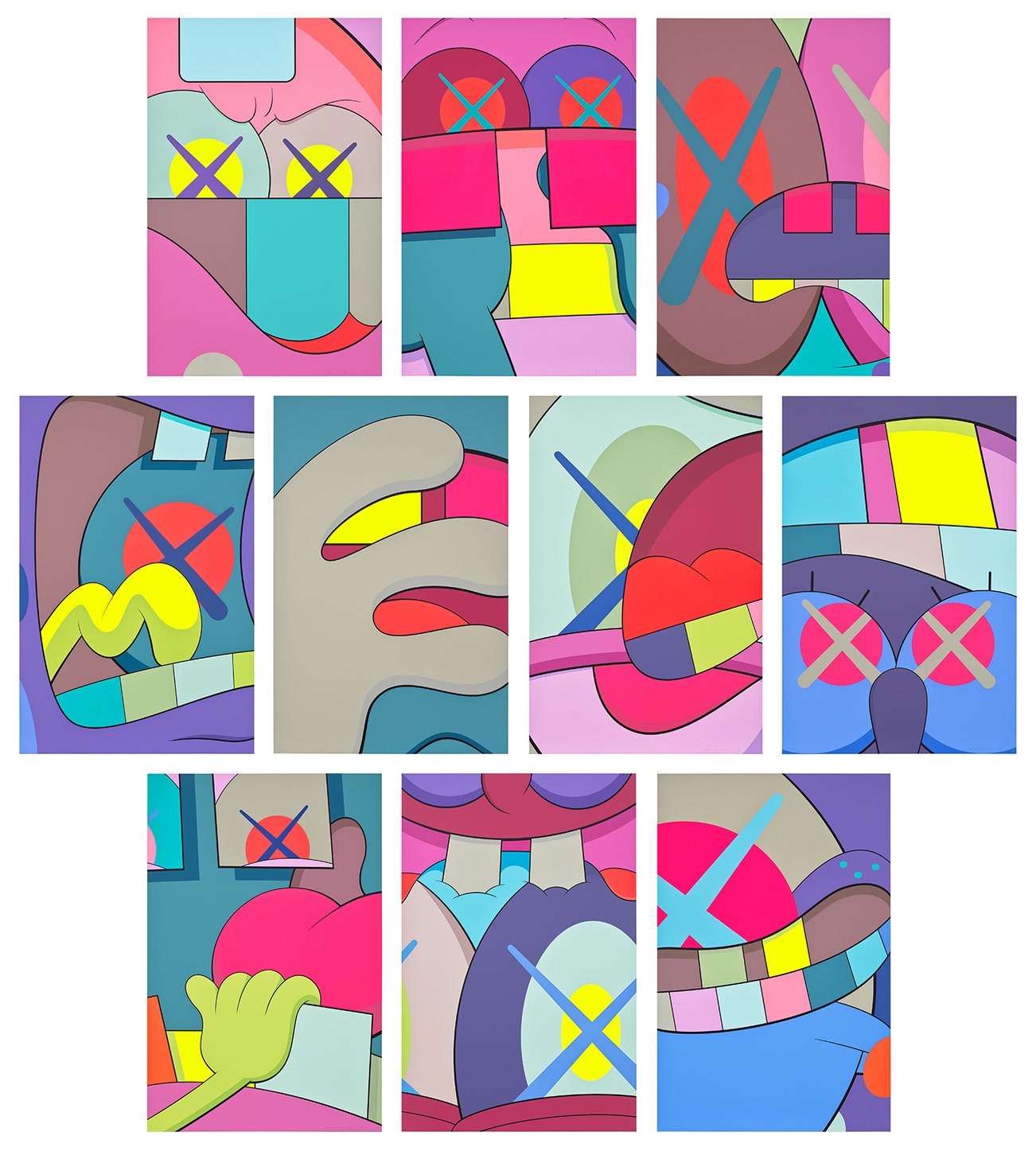 Perhaps he is most known for his larger-than-life fiberglass sculptures that supplant the body of Mickey Mouse onto KAWS' own imagined creatures, often with 'x'-ed out eyes or ultra-animated features. However, KAWS also works frequently in neon and vivid paint, adding animation and depth to contemporary paintings filled with approachable imagination. There is mass appeal to KAWS, who exhibits globally and most frequently in Asia, Europe and the United States.